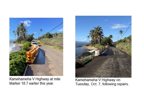 Emergency repairs on Kamehameha V Highway on Moloka‘i completed October 7