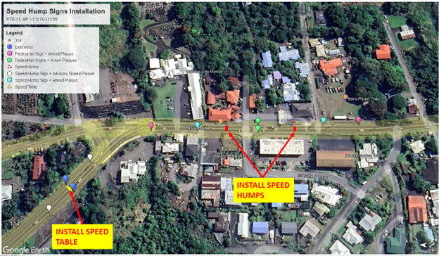 Following installation, there will be a total of 24 raised crosswalks, speed tables and speed humps on state routes on Hawai‘i Island.