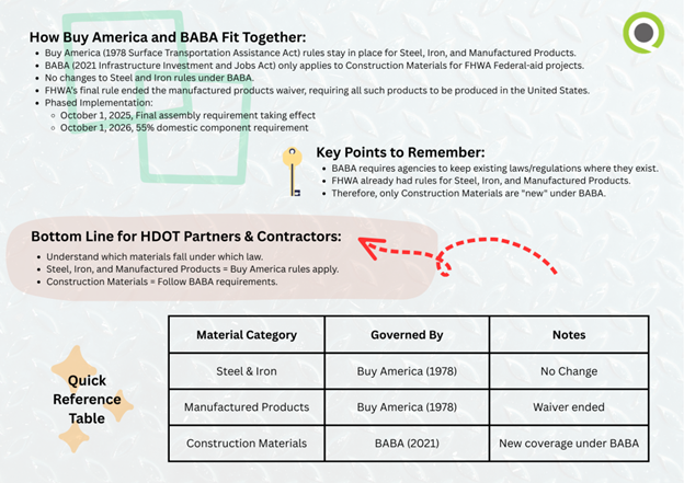 The following resources are provided to support your understanding and implementation of the Buy America and Build America, Buy America (BA+BABA) requirements.