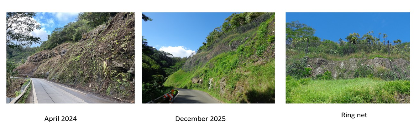 KAHULUI, Hawaiʻi – The Hawaiʻi Department of Transportation (HDOT) announces the completion of its $7.7 million emergency rockfall mitigation work at mile markers 9.7 to 9.9 on Hāna Highway (Route 360) near Waikamoi Stream.